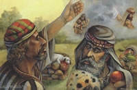 Abraham, Gen 21-25. God called Abraham to sacrifice his promised son Isaac. He obeyed, believing that God could raise him from the dead. But God spared his son by providing a substitute ram who died in his place. God is love.