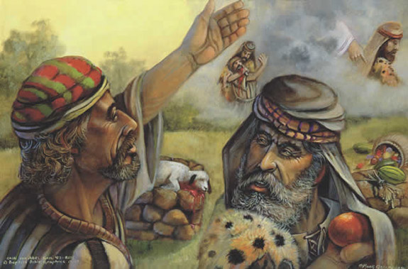 Cain and Abel, Gen 4-5. They were born sinners. God gave them a conscience that they might please Him. Abel offered his sacrifice God’s way and pleased God. But Cain offered the fruit of his hands, hated his brother and killed him. God is holy.