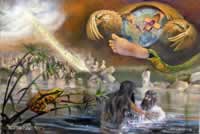 The Parables of Jesus, Mk 4:1-34. The multitudes crowded so close to hear Him that He taught from a boat. Mark recorded the parables of a sower, a lamp, a slow growing seed and a small mustard seed. Afterwards He explained to His disciples the parables’ meaning, which meaning those outside the faith couldn’t understand. From a small beginning Christianity would spread rapidly among the Gentiles.
