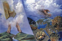 From war on earth to peace on earth, 24:1-25:46. After a time of great tribulation, the Messianic